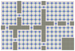 A hybrid of visibility graphs and Theta* is to partially preprocess the grid. Block A*[29] preprocesses the grid into small blocks (size 3 to 5), finding paths faster than Theta* but slightly longer.