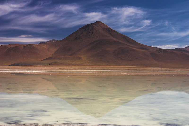 Volcano with reflection on Laguna Blanca.