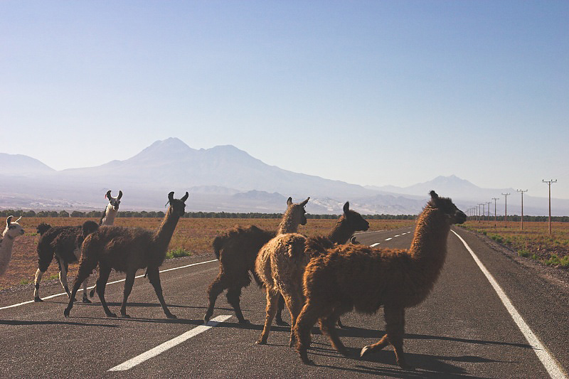On the way to Laguna Chaxa, a group of llamas were slowly crossing the road in single file.