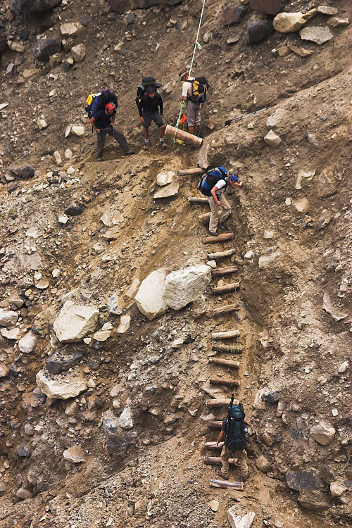 The Dutch couple descending down the rope ladder in the second landslide area. The guides and porter for the American guided group are standing on top with Mariano in the middle. Mariano tipped us off to Valle del Silencio, which we visited later.