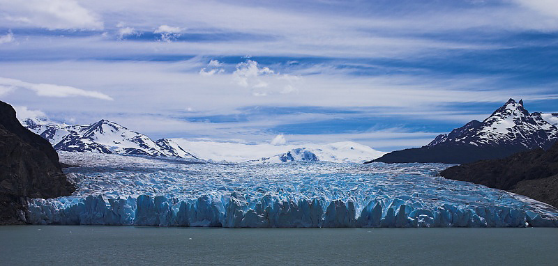 The eastern section of the face of Glacier Grey from the mirador near Refugio Grey. This section is 1.2 km / 0.75 miles wide.