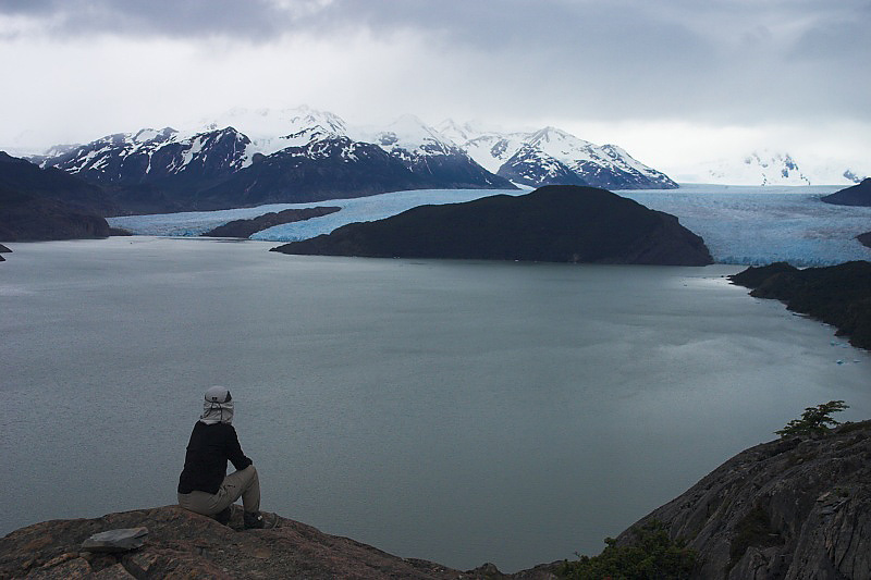 Serene staring at the face of Glacier Grey. The face is about 5 km / 3 miles wide.