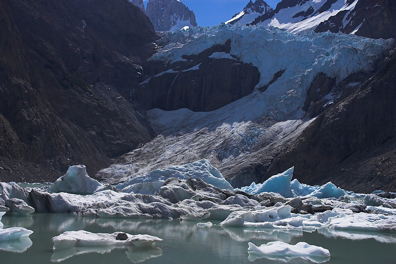 Laguna Piedras Blancas with the glacier in the background. This glacier is the same one directly in front of the Fitzroy massif.