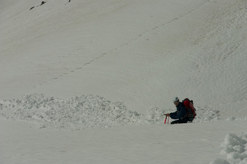 Paul triggered off this point avalanche just before we reached camp. The bulk of the displaced snow is hidden by the change in gradient of the slope.