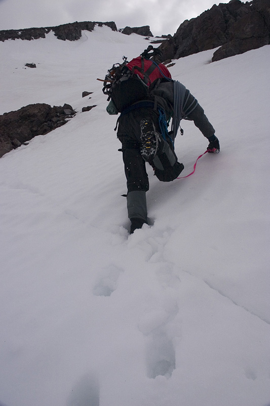 Paul kicking steps in the crusty snow. It turned icy shortly after this and we began roping up.