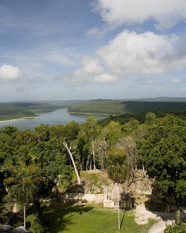 View of Lake Yaxha from the top of Temple 216 (100 ft).