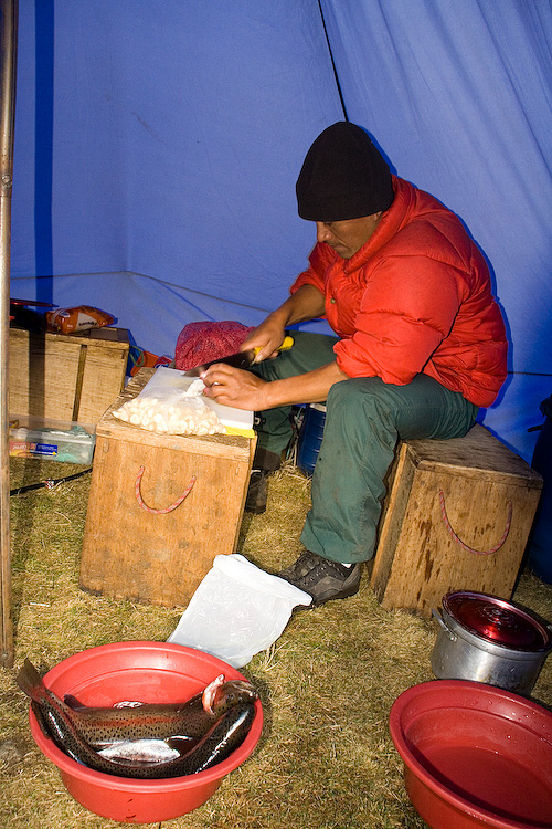 Zac preparing the trout for dinner.
