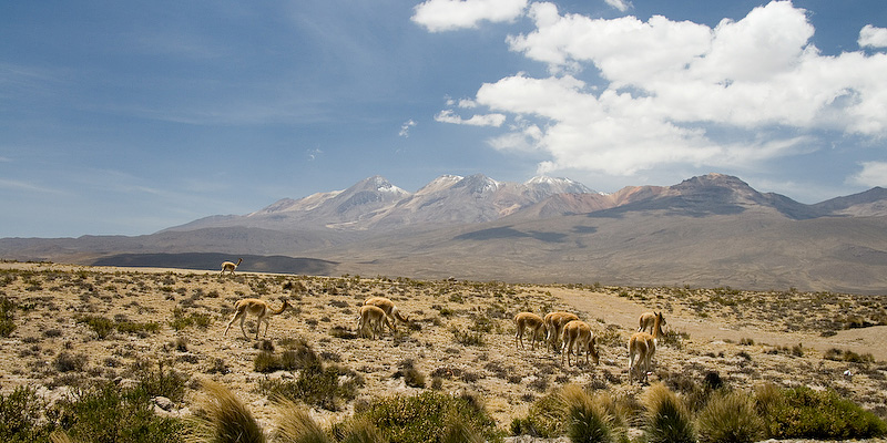 Vicunas and Chachani in Reserva Nacional de Aguada Blanca.