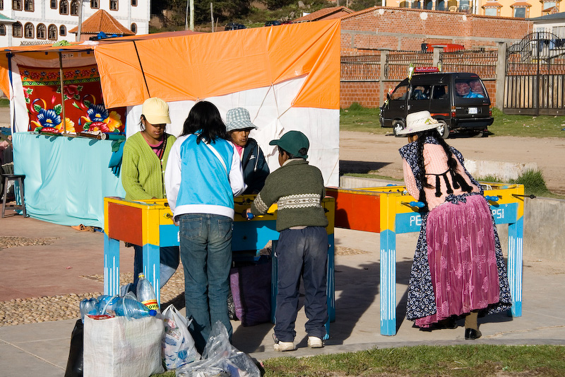 Bolivians enjoying foosball.