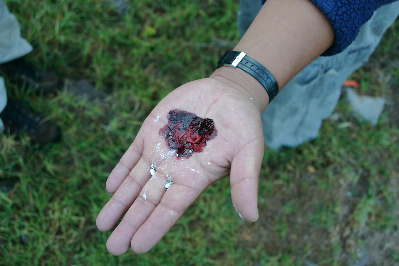 At Tarahuasi. Edgar was incredibly knowledgeable about the flora and fauna during the trip. Here he's showing us a parasite that grows on cacti. The parasite is used to make lipstick.