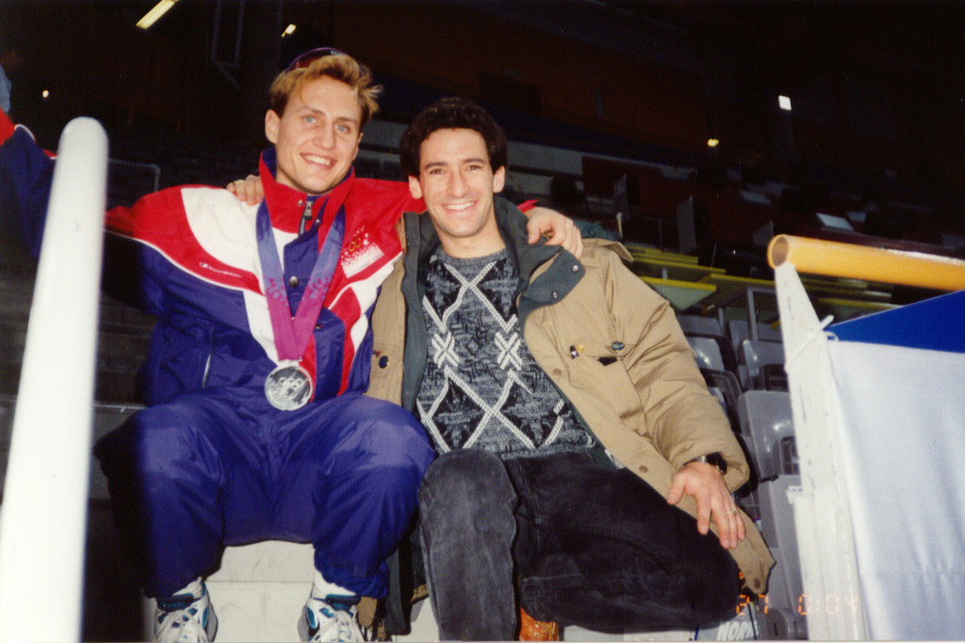 This photo was taken at the 1994 Winter Olympics in Hamar, Norway after John had just won a silver medal in the 5,000m relay.
