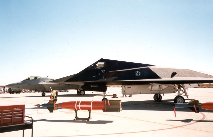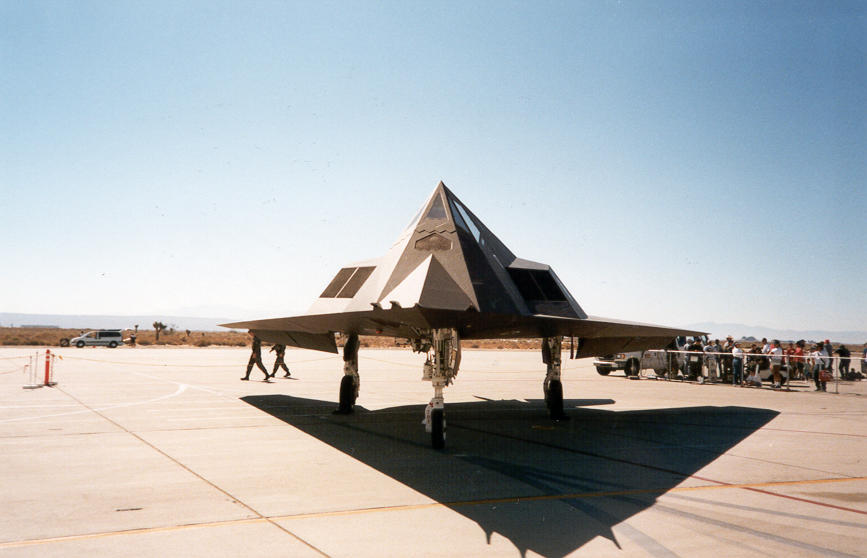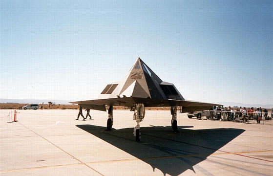 ++ The f117a stealth fighter. Notice how you can see the shape of the plane by its shadow on the ground. |