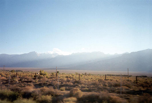 ++ As the late afternoon rays cut through the fog, Mt. Whitney, the tallest peak in the lower 48 states, can be seen off in the distance, creating its own clouds. |