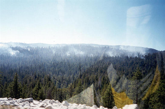 ++ As we continued east on 120, we saw smoke from the many fires that were burning in Yosemite at the time. |
