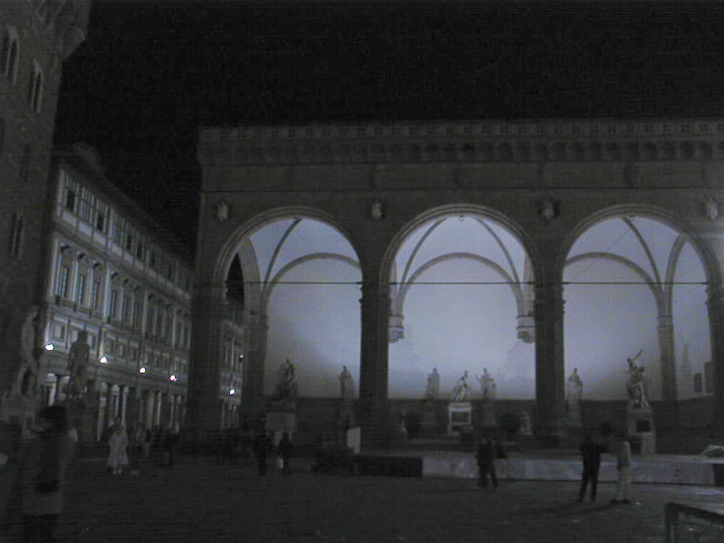 The replica of the David and the Galleria Uffizi at night.