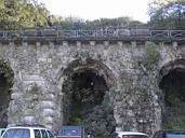 A constant flow of water from a creek has caused these stalactites to start forming on the arches over the years.