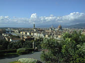 Piazza Michelangelo is on a hill on the south bank of the Arno River, just east of the center of Florence. Designed in 1869 by Poggi, it offers a great view of the city, and is a very popular tourist destination.