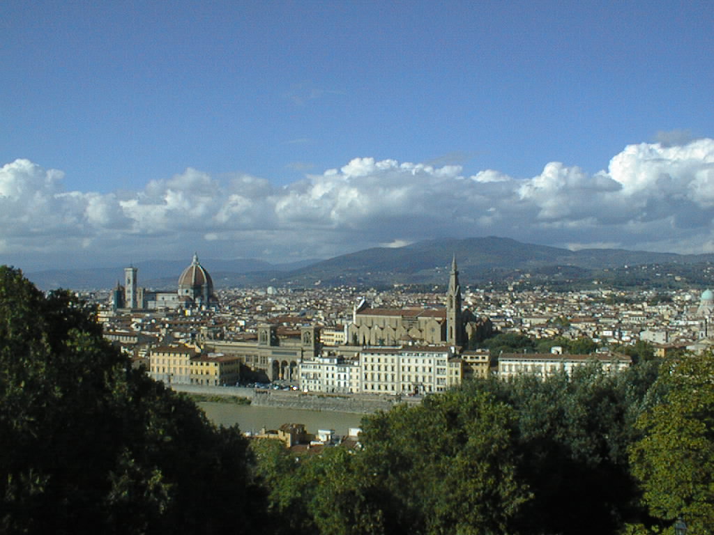 Turning northward, the Duomo and Santa Croce church. You can see how the white facade of Santa Croce contrasts with the rest of the building.