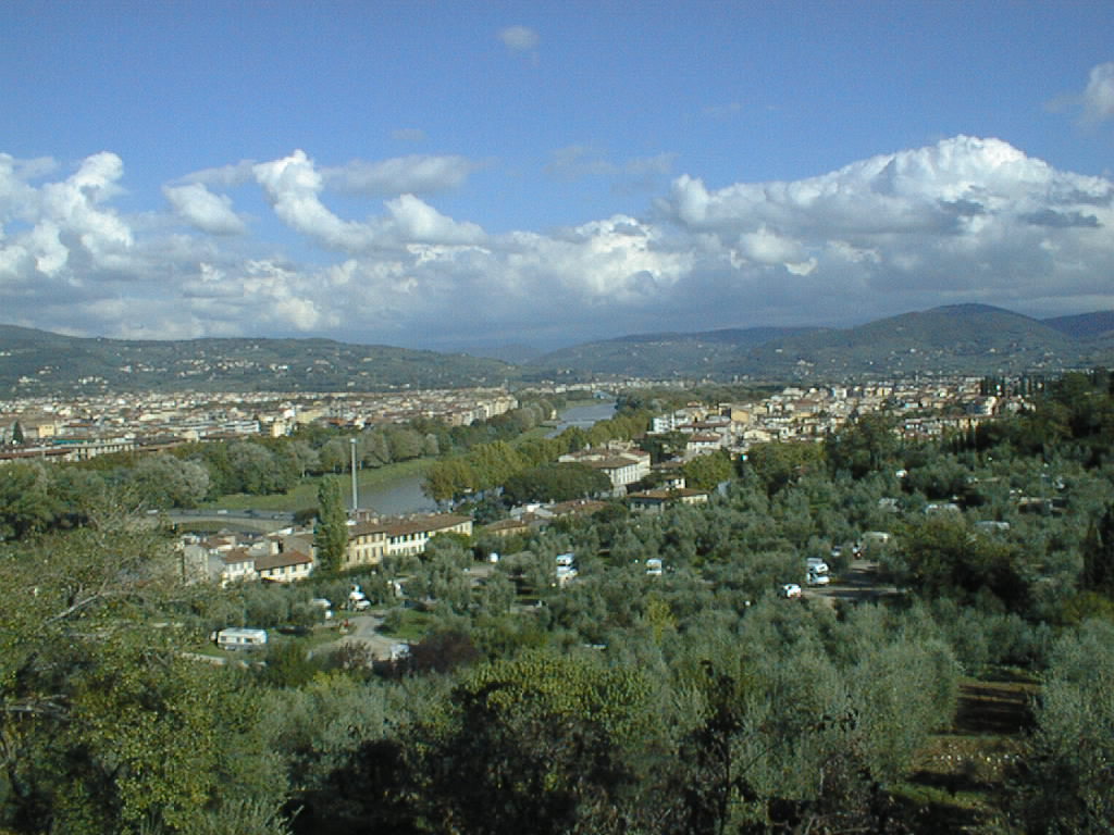 The Arno stretches upriver to the east. The first bridge, S. Niccolo, is near the closest supermarket. The second bridge, Ponte da Verrazzano, is near the big hardware store.