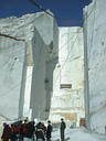 The sparkling white quarry walls loom some 200+ feet overhead.