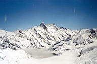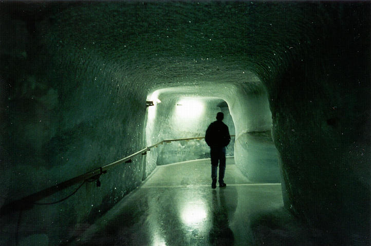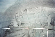++ Another attraction at the Jungfraujoch station is the Ice Palace, carved straight into the glacier. The floor, walls, and ceiling are all bare ice. The glacier keeps the air below freezing year-round. |