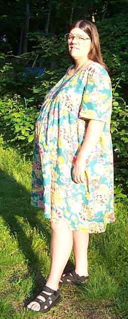 Now that it's hot, I'm discovering the joys of gigantic muu muus to cover my gigantic self. I have a photo taken June 20 of me in one of these.