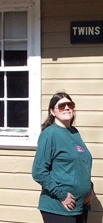 I'm in front of one of the cabins at the local youth camp -- the cabins all have names; this two-building cabin is named Twins and a three-building cabin is named Triplets. When I take walks with the babies past these cabins I explain to them that they are twins and not triplets!